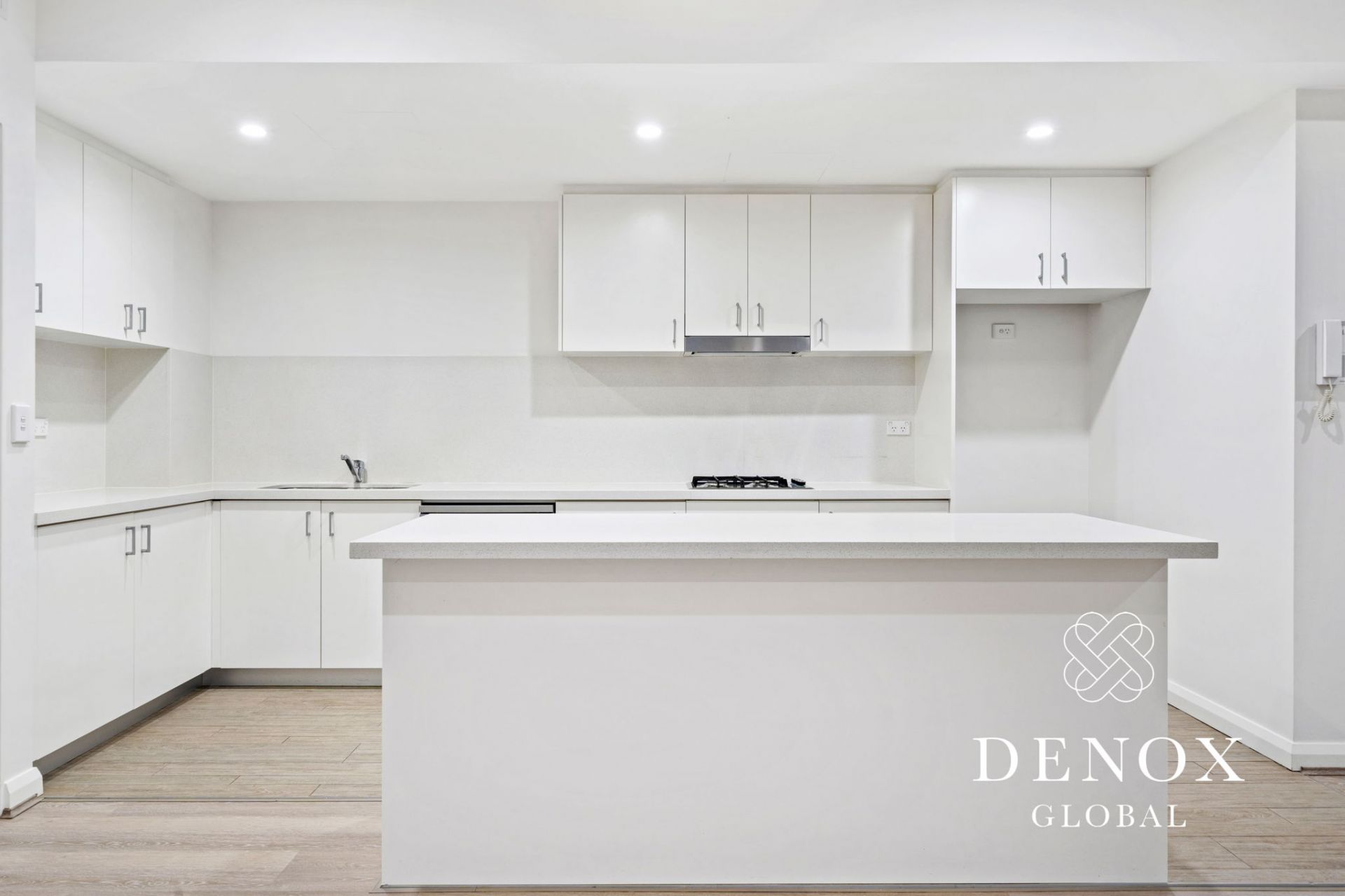 - Modern kitchen with stone bench tops, breakfast island and gas-cooking