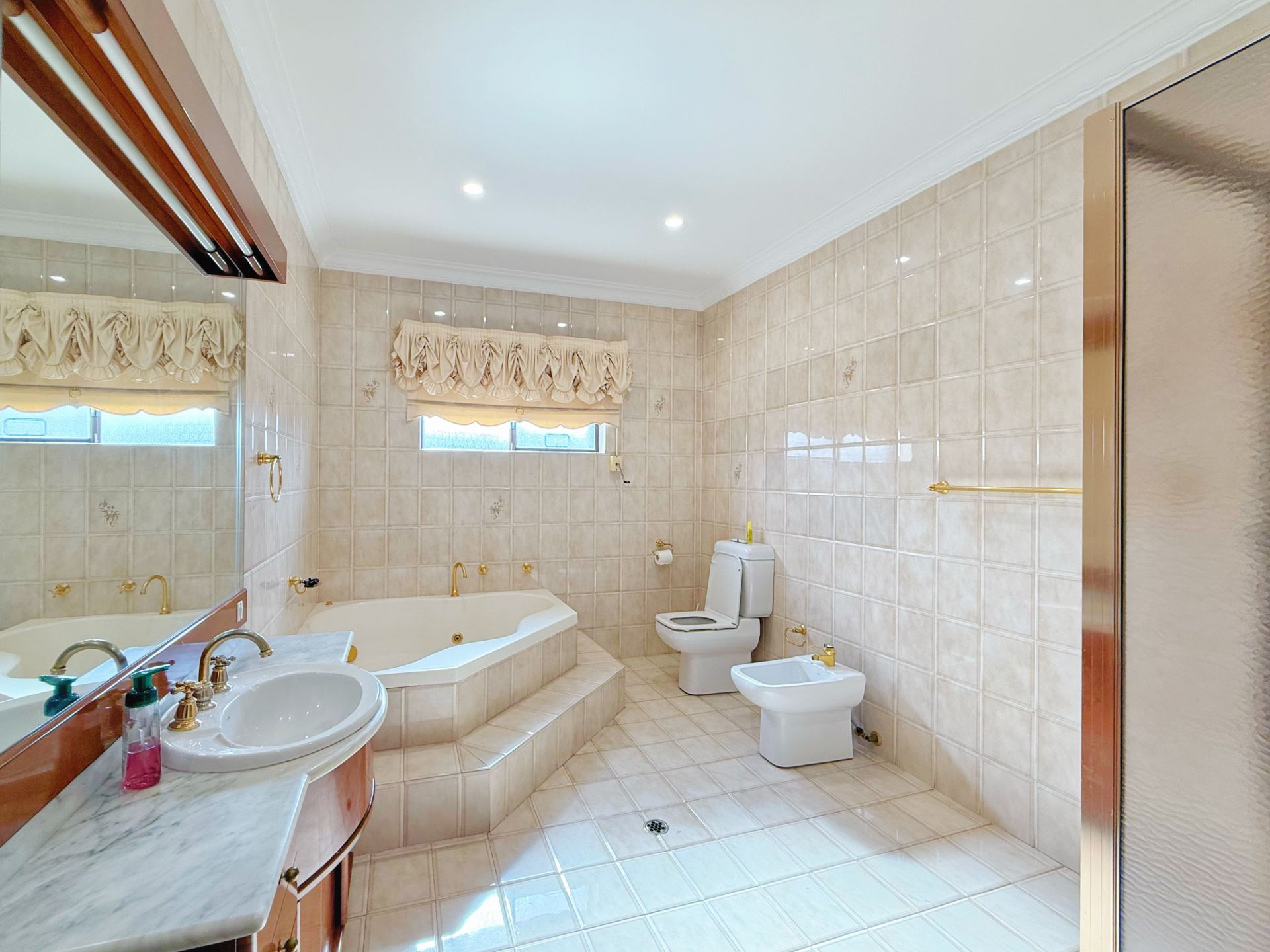 - Gourmet kitchen with stone benchtops, integrated appliances