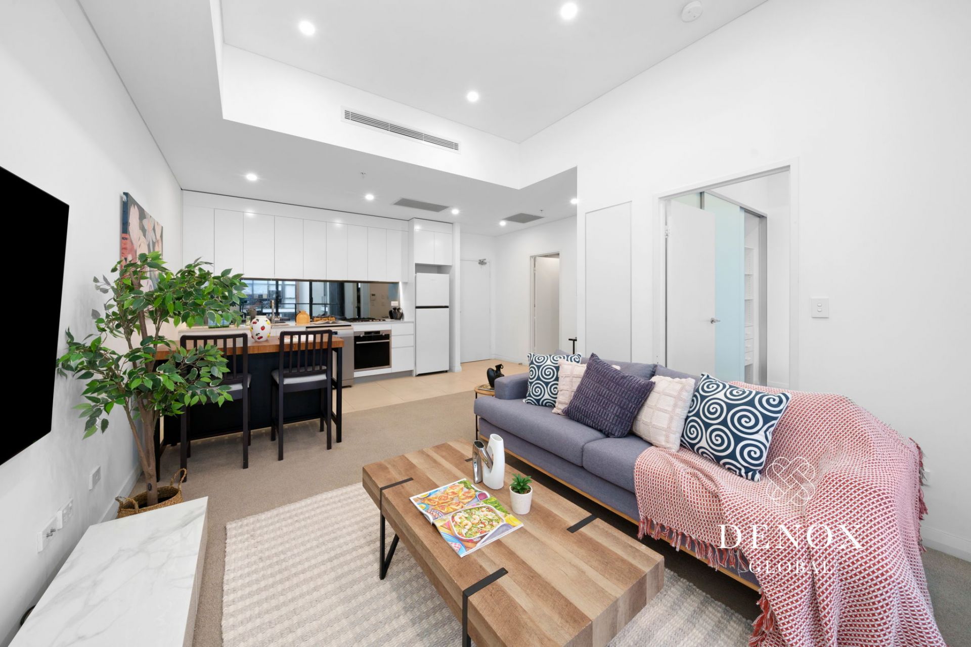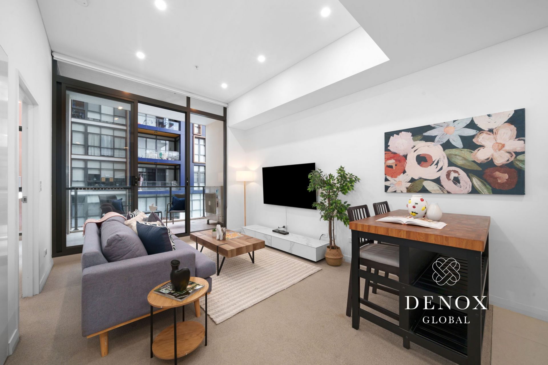 - Bright open plan living with floor-to-ceiling sliding doors and living + dining flowing out into a covered balcony
