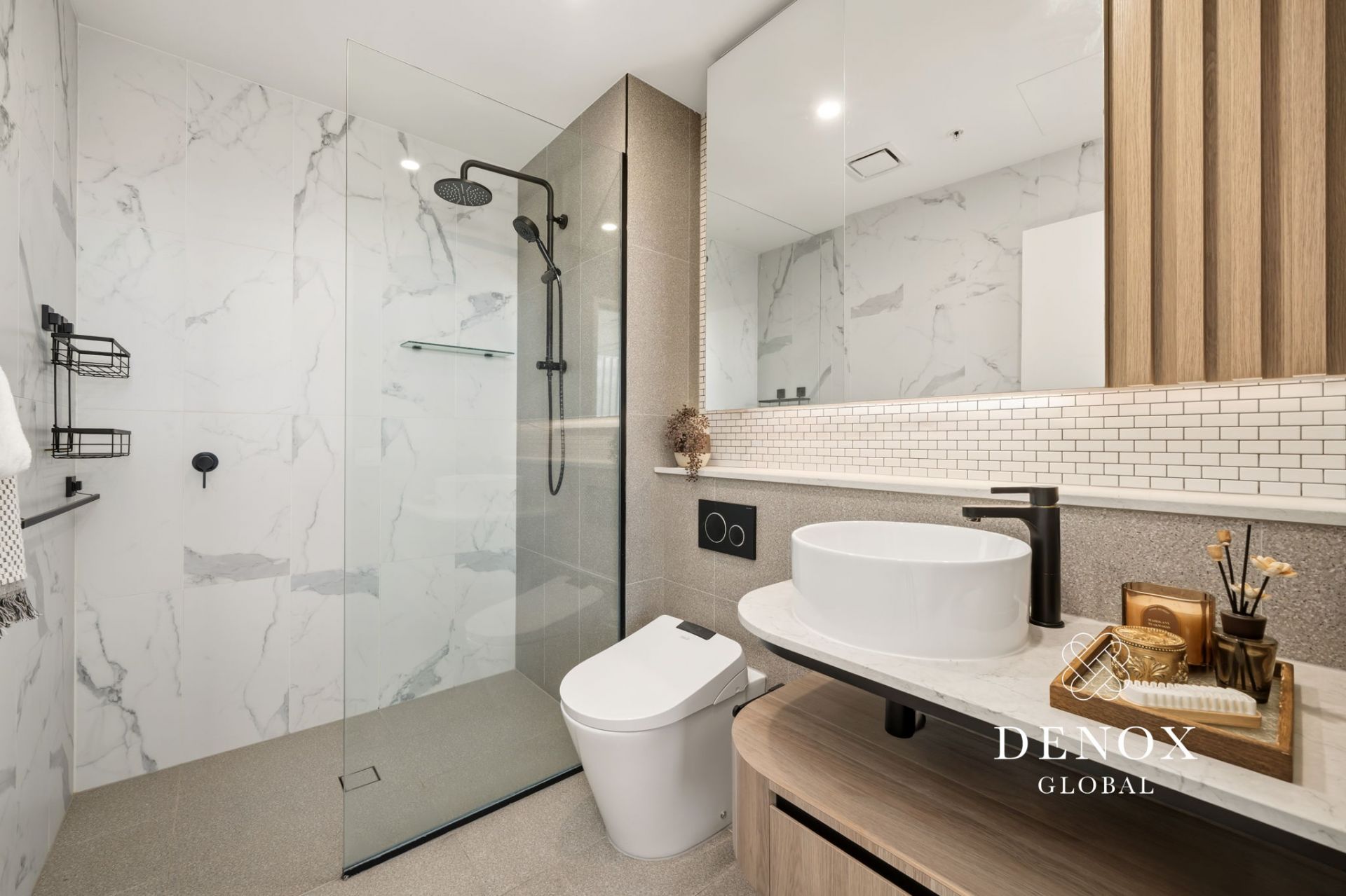 - Luxurious bathrooms with floor to ceiling tiles, feature wall, dual shower system, and vanity cabinets